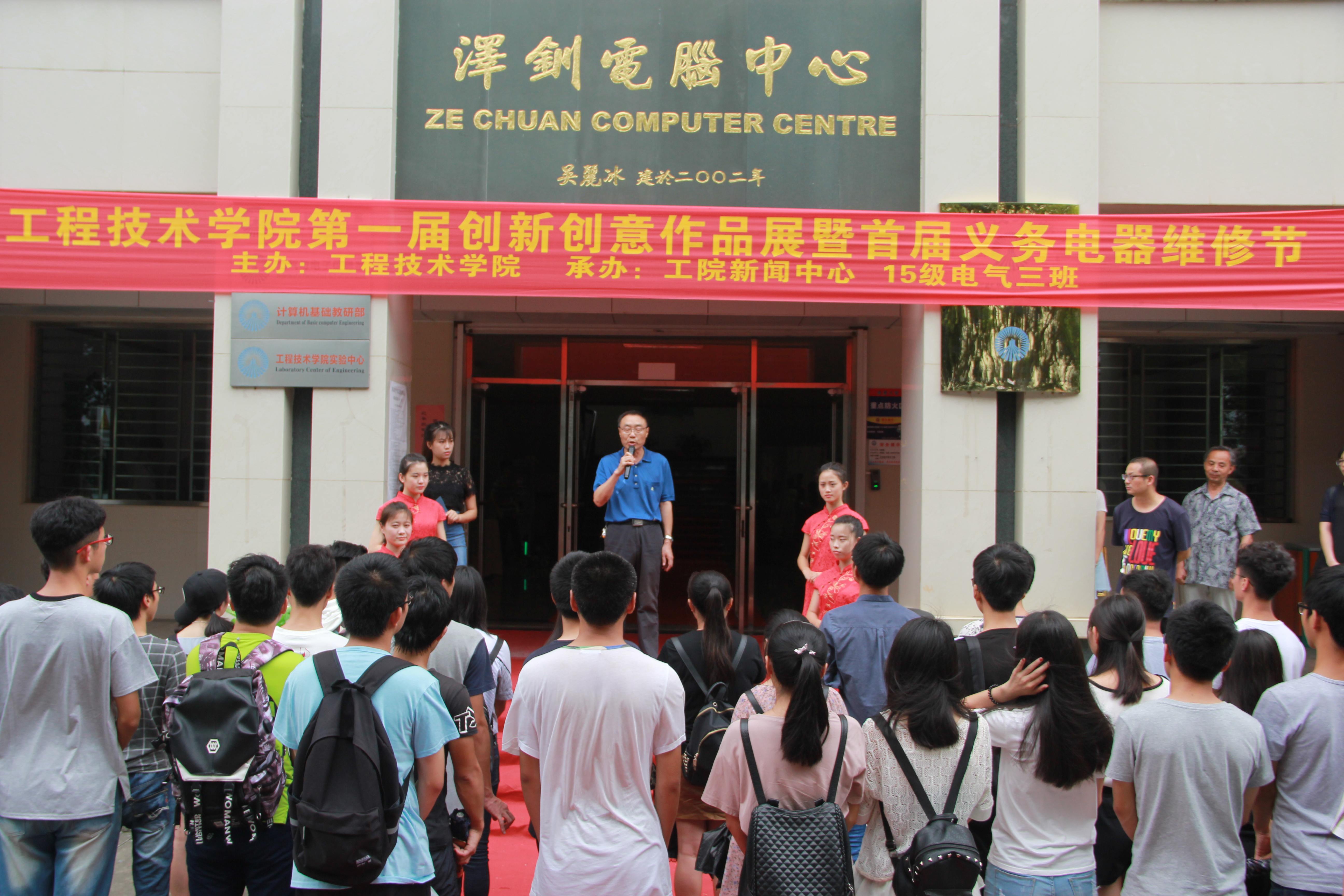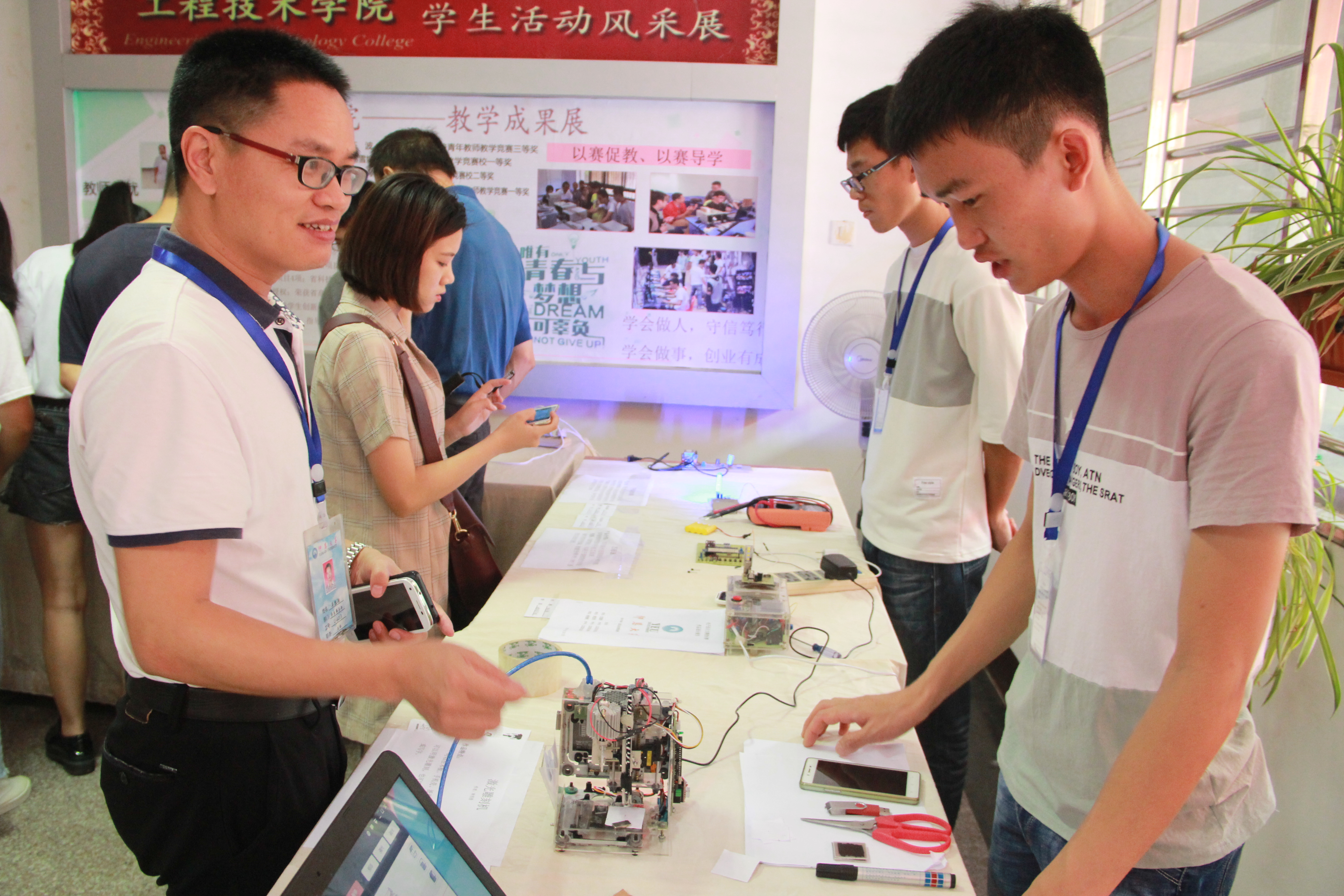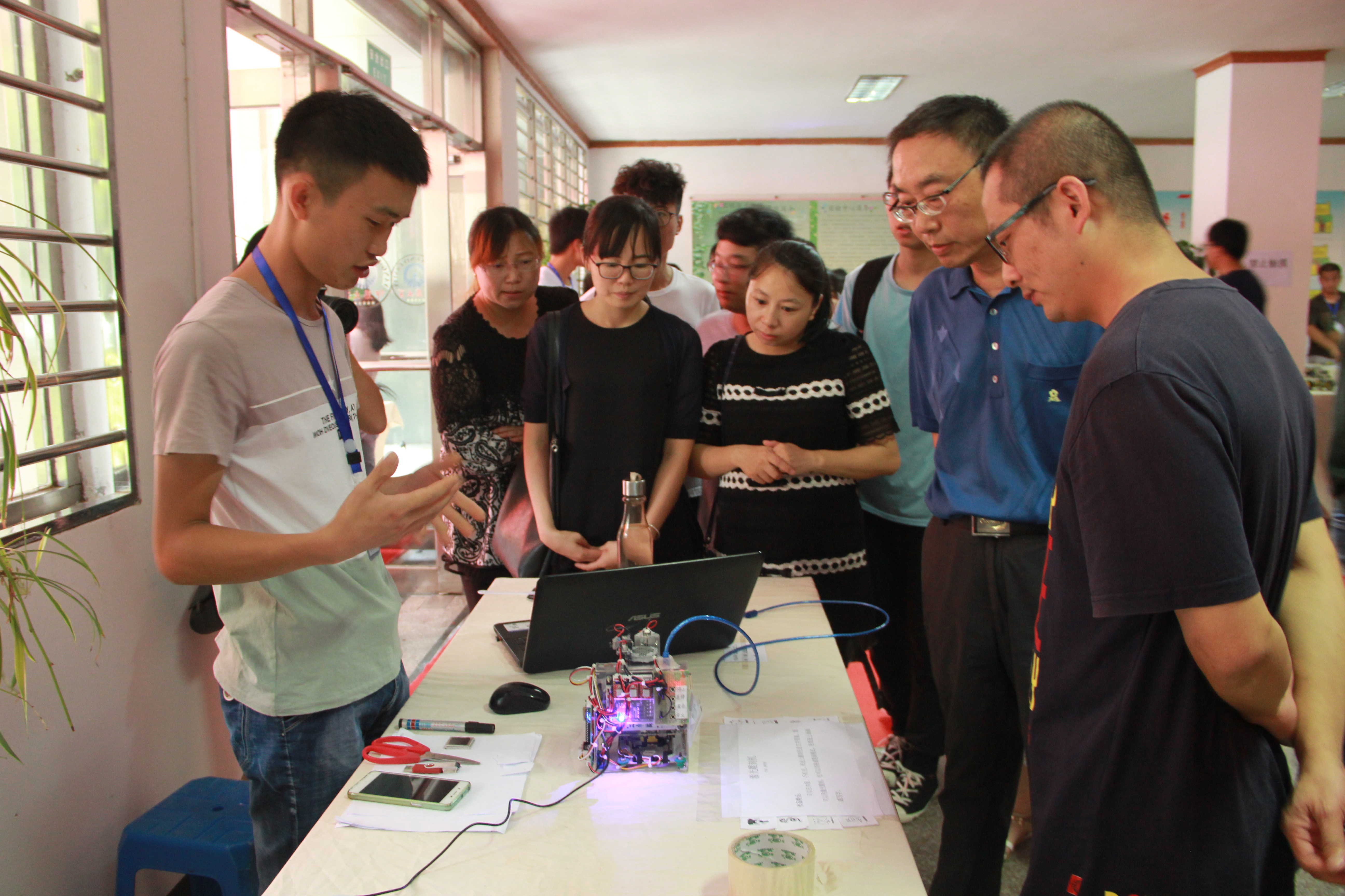 6月14日下午,由8827太阳集团主办的第一届创新创意科技作品展在泽钏楼一楼大厅举行。副校长许总,学生事务部主任吴胜潮,8827太阳集团常务副院长金承勇、党总支书记兼副院长曾凤生,教务部副主任郑秋莲、赵芳芳等到场并观看作品展。